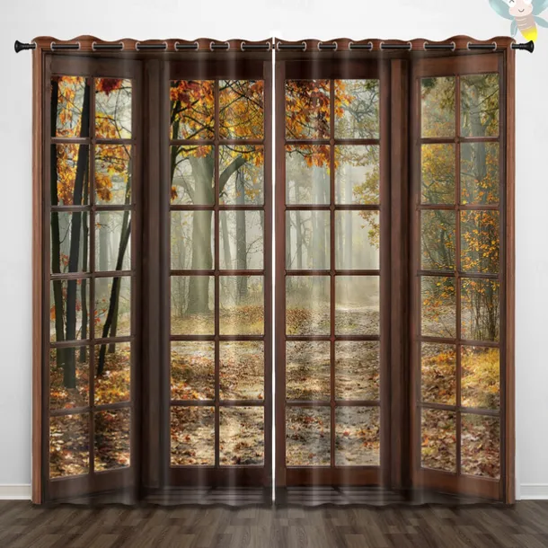 Perforated Blackout Curtains Window Forest Beautiful Scenery Insulation Outdoor Balcony Rest Living Room Home Decoration 2-piece Set 3D Digital Printing