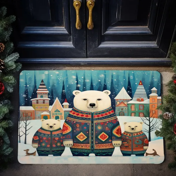 Polar Bear Doormat Floor Mats Washable Rugs Kitchen Mat Scandinavian Folk Art Non-Slip Oil Proof Rug Indoor Outdoor Mat Bedroom Decor Bathroom Mat Entrance Rug