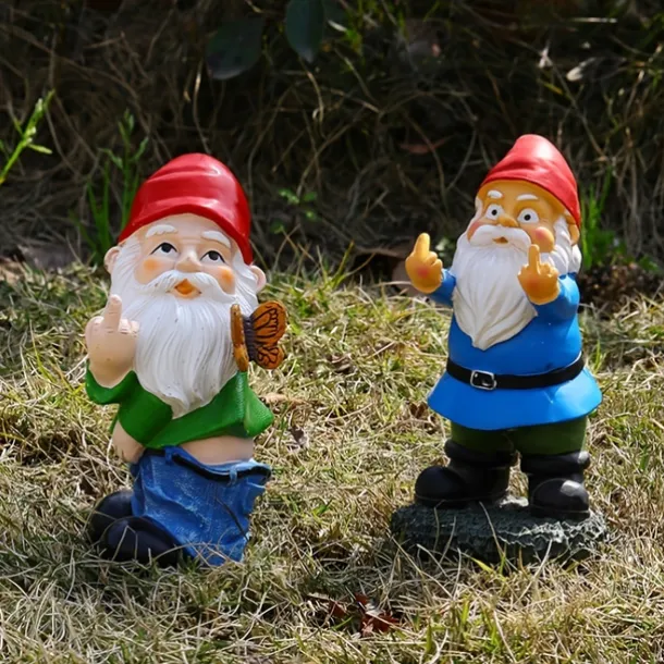 Rude Gnome,Funny Garden Gnomes Colorful Garden Ornaments Double Middle Fingers Resin Statues for Lawn Yard
