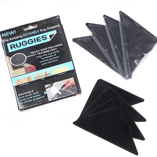 Rug Grippers 4 Pcs Triangle Non Slip Washable Rug Gripper Reusable Removable Anti Curling for Kitchen Rug Area Rug Livingroom Bedroom