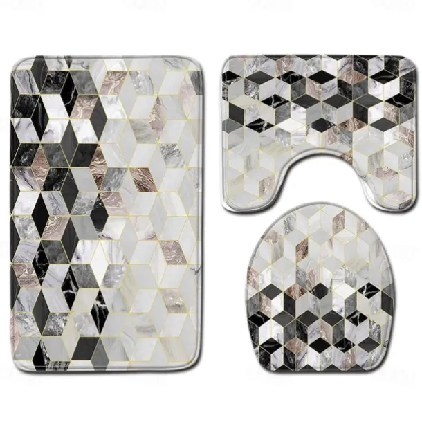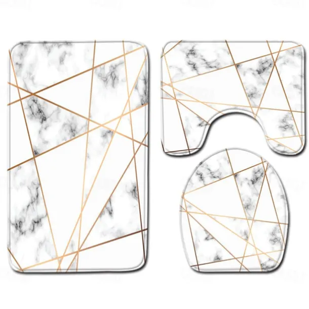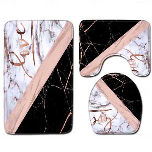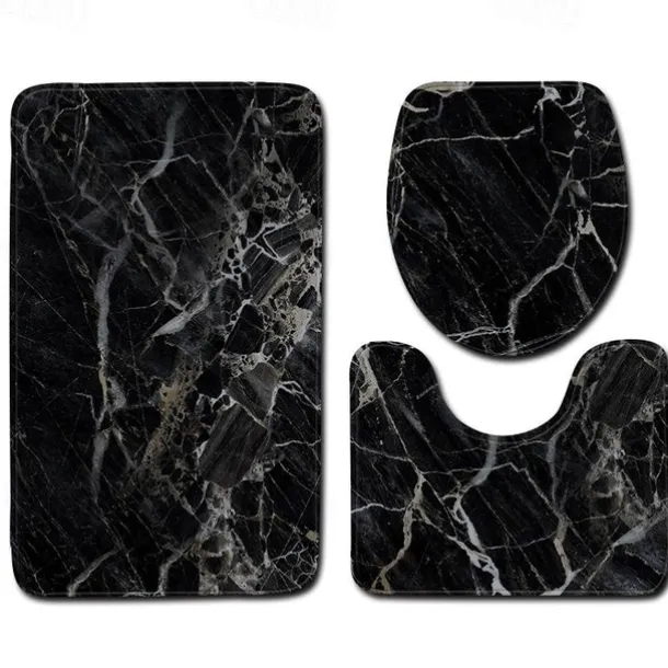 – Premium Polyester Material: The Marble Texture bathroom shower rugs set is made of high-quality polyester materials, ensuring its softness and durability.