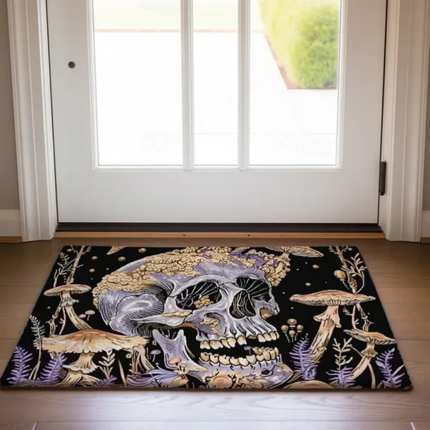 Skull Mushroom Doormat Floor Mats Washable Rugs Kitchen Mat Non-Slip Oil Proof Rug Indoor Outdoor Mat Bedroom Decor Bathroom Mat Entrance Rug