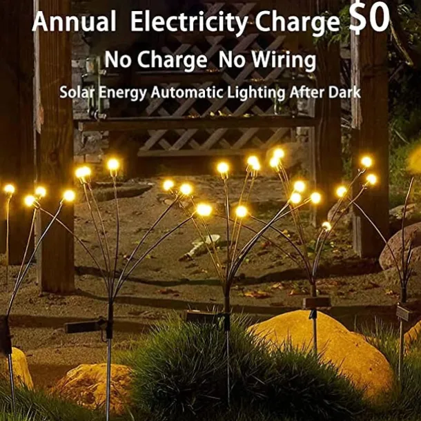 Solar Garden Light Waterproof Firefly Lights Outdoor Starburst Swaying Lights 2 Modes 6/8/10 Heads for Yard Patio Pathway Decoration