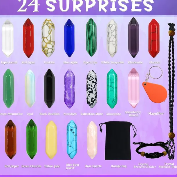 Stone Gift Box Advent Calendar, Gemstone 24 Days Countdown Calendar, Christmas Advent Calendar Polished Collection Toys For Geology Enthusiasts And Crystal Gem Collectors