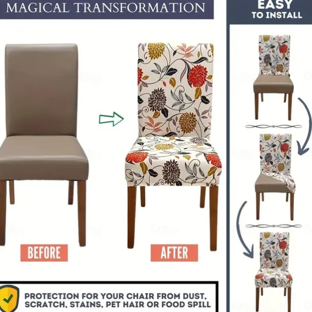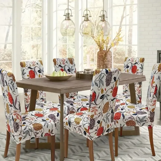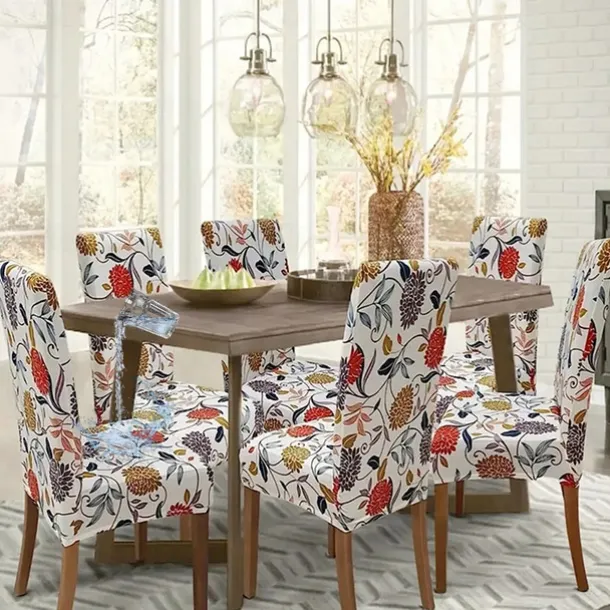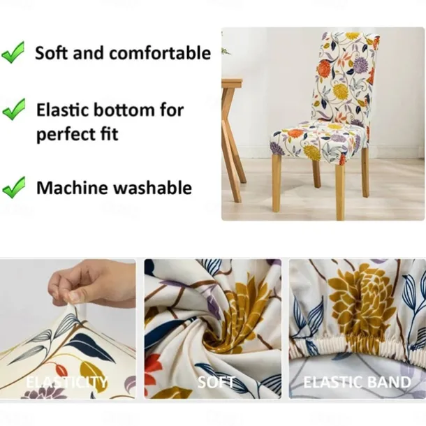 Water Resistant Stretch Spandex Dining Chair Cover 1/4/6 Pcs Set, Floral Pattern Stretch Chair Protector Cover Seat Slipcover with Elastic Band
