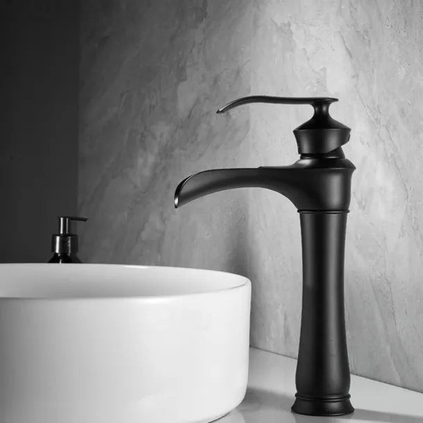 Matte Black: Elegant and modern design waterfall faucet bathroom with superior corrosion & rust-resistant finish will prevent dirty from sticking to the black sink faucet bathroom surface, resist water spots, fading and daily scratches.