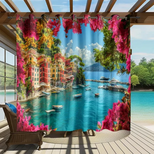 Waterproof Outdoor Curtain Privacy, Sliding Patio Curtain Drapes, Pergola Curtains Grommet 3D Ocean Landscape For Gazebo, Balcony, Porch, Party, 1 Panel