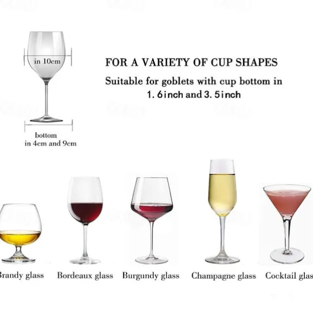 4. Versatile design: With an open wide mouth design, this wine glass holder fits a variety of glasses, including Bordeaux wine glasses, white wine glasses, cocktail glasses, and more.