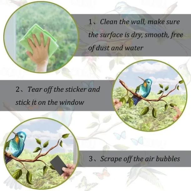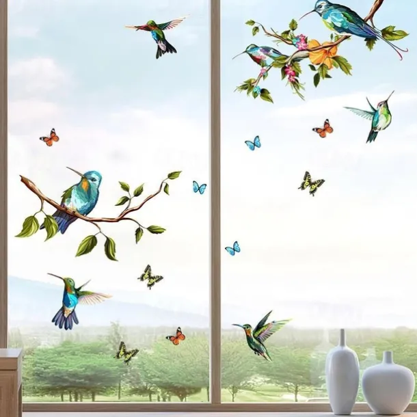1 Set Of Hummingbird Wall Decals, Peel And Stick, Bird Flower Wall Stickers Decor, Butterfly, Plant Vinyl Glass Wall Decals For Home, Removable Stickers For Bedroom, Window
