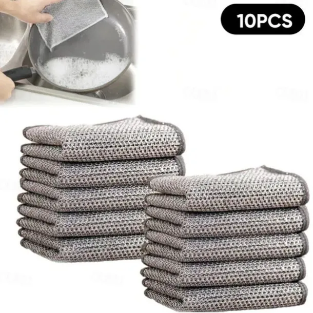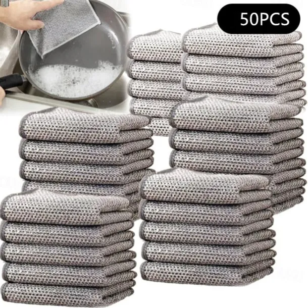 10/20/50pcs Multipurpose Wire Dishwashing Rags for Wet and Dry 2025 New Multifunctional Non-scratch Wire Dishcloth,Scrubs and Cleans for Dishes, Stove Tops, Easy Rinsing, Machine Washable