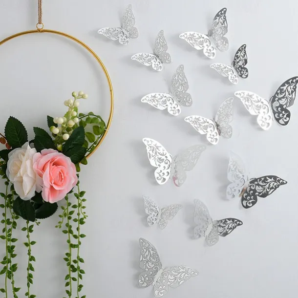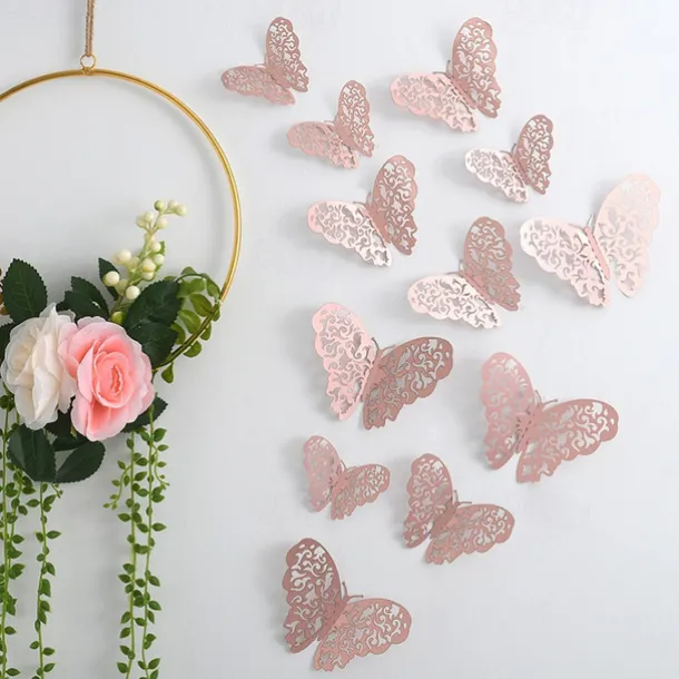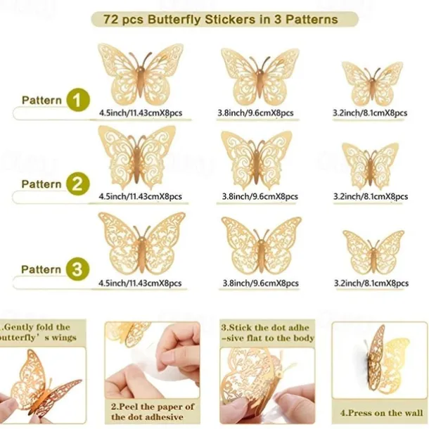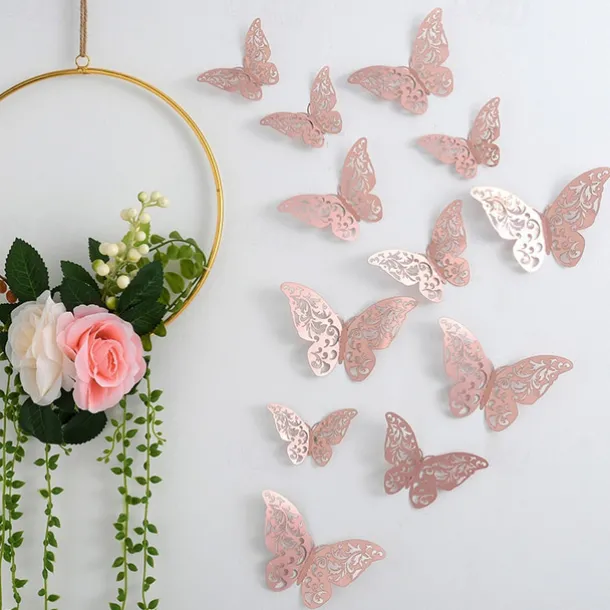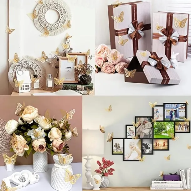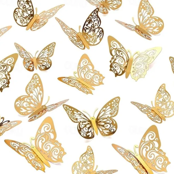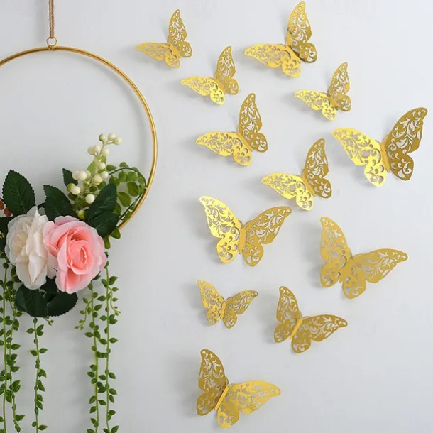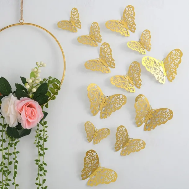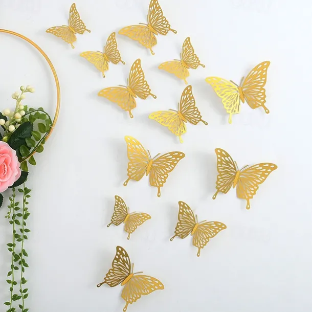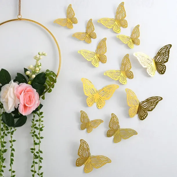 12pcs Golden Butterfly Decorations – 3D Wall Art for Parties, Crafts, and Baby Showers – Easy to Apply Stickers for Beautiful and Elegant Decor
