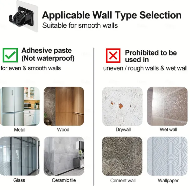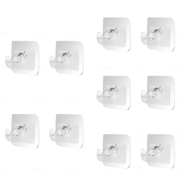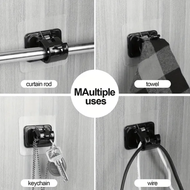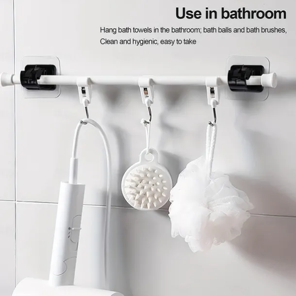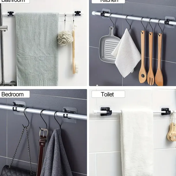 16PCS No-Drill Curtain Rod Brackets – Self-Adhesive Plastic Hooks, Universal Wall Mount for Bathroom, Kitchen, Home, and Hotel