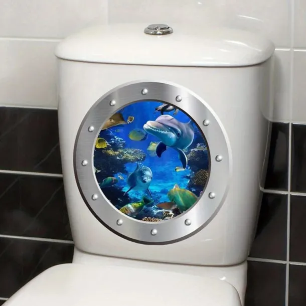 1pc 3D Turtle Toilet Sticker, Undersea Fake Submarine Window Pattern, Self-Adhesive Toilet Lid Decals