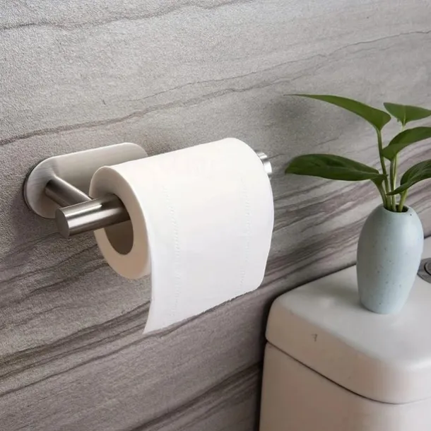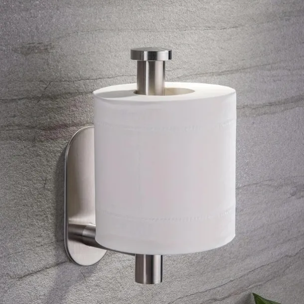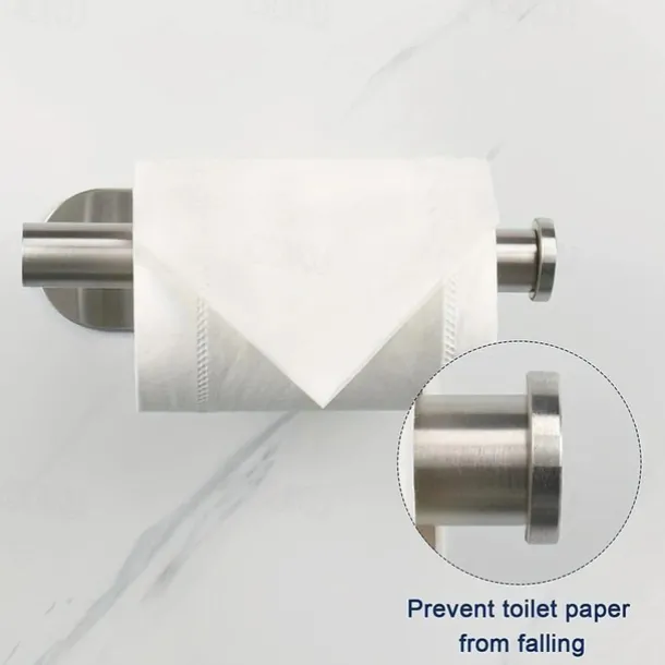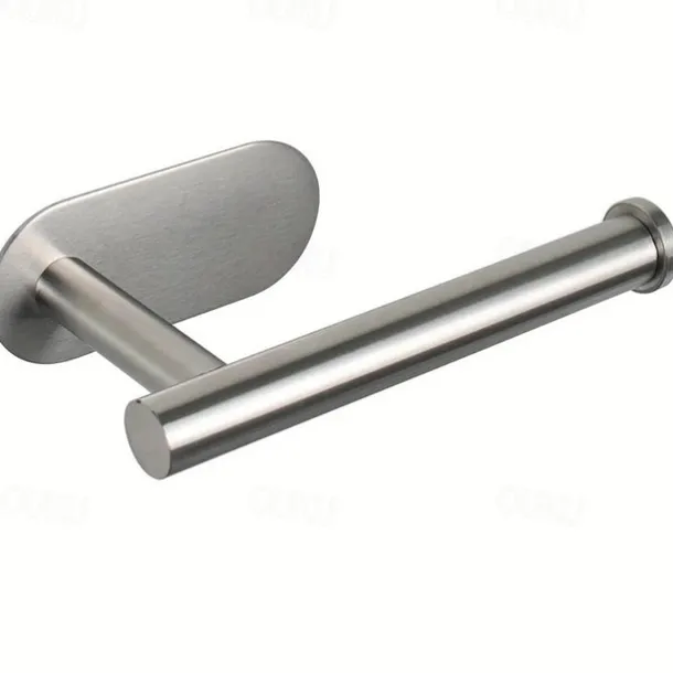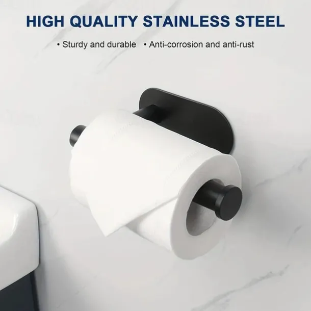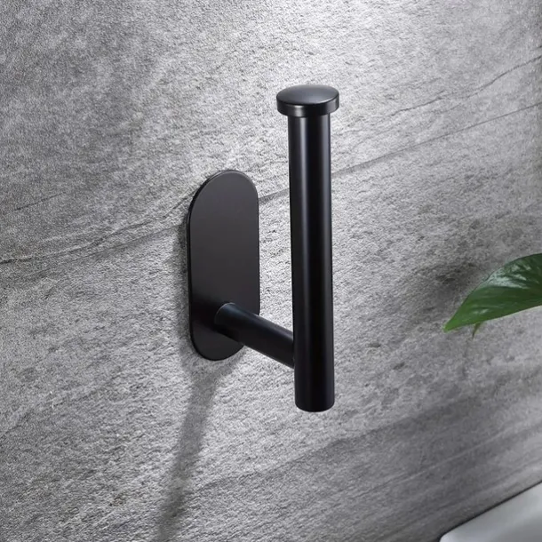 1pc Adhesive Toilet Paper Holder – Self Adhesive Black Toilet Paper Roll Holder Wall Mount For Bathroom And Kitchen, SUS-304 Stainless Steel