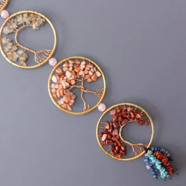 1pc Dream Catcher 7 Chakra Crystal Tree Of Life Wall Hanging Reiki Gemstone Dream Catchers Wall Hanger for Yoga Meditation Window Home Decor