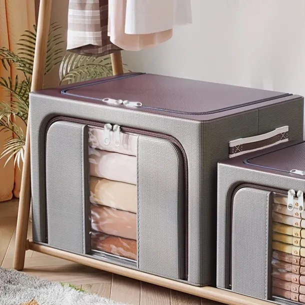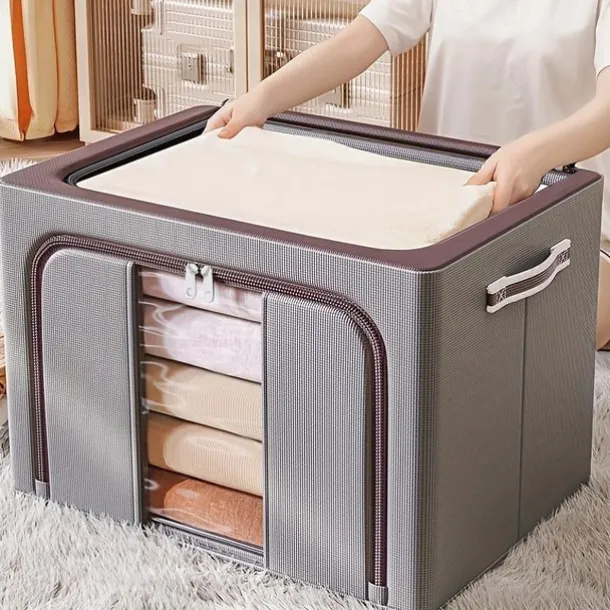 1pc Large Capacity Clothes Storage Box, Dustproof Clothing Quilt Organizer, Foldable Container For Dorm, Home