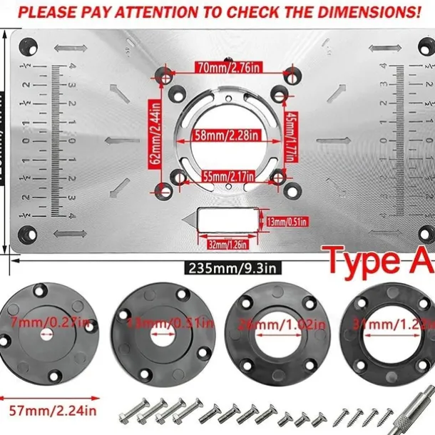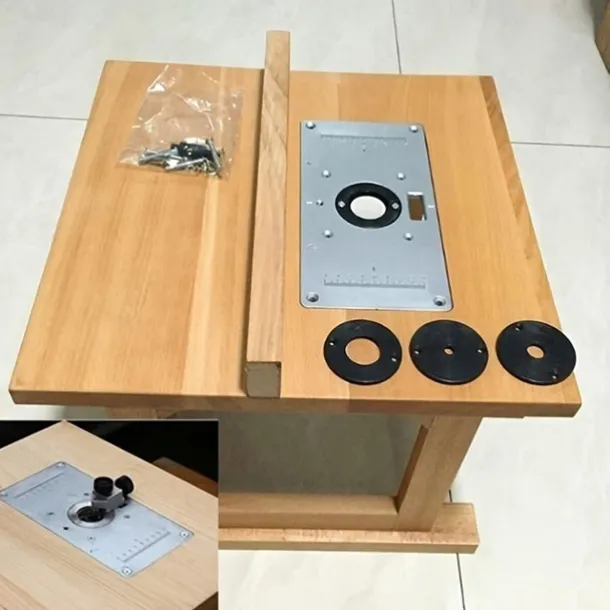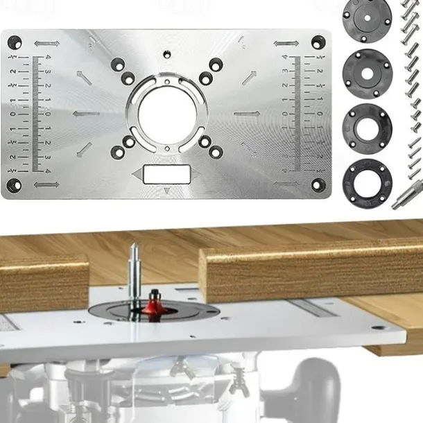 1pc Multifunctional Aluminium Router Table Insert Plate For Woodworking Benches, Router Plate, Wood Tools With Rings