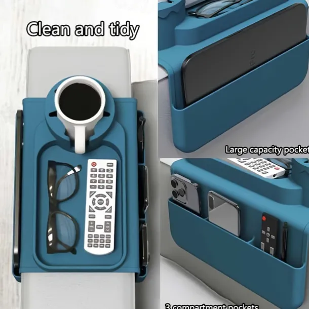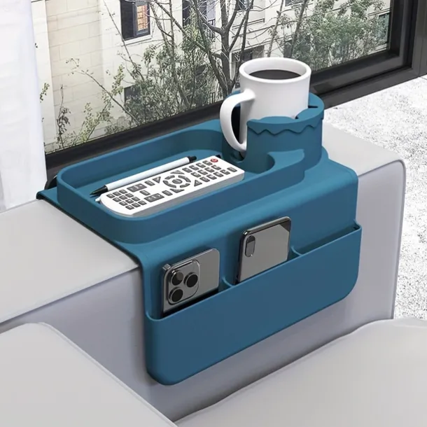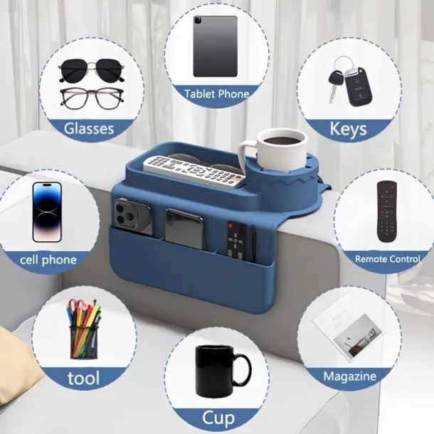 1pc Multifunctional Silicone Armrest Cup Holder Tray Non-Slip Sofa Armrest Tray with Cup Holder – Heat-Resistant Couch Coaster, Organizer with Side Pockets for Remotes, Phones, Books