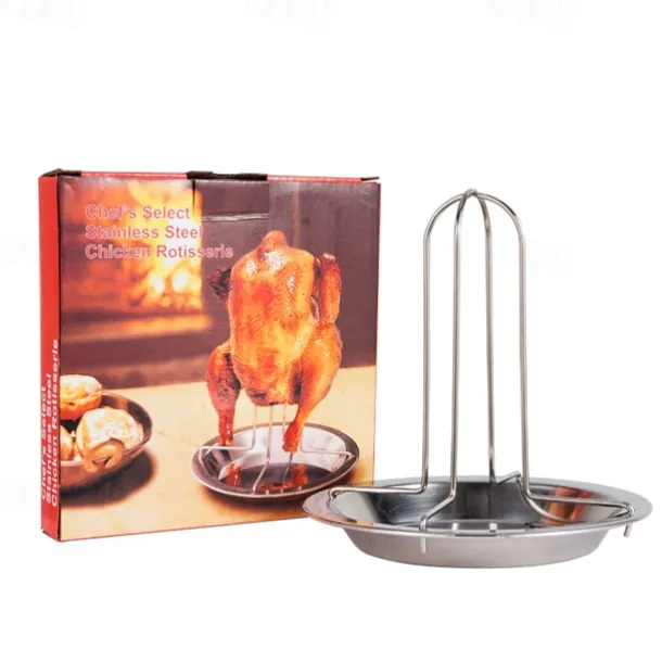 1Pc Outdoor Camping Barbecue and Roast Chicken Rack Portable Stainless Steel Grill Rack for Camping and Picnic Easy to Use and Clean Perfect for Roasting Chicken, Meat, and Vegetables Outdoors