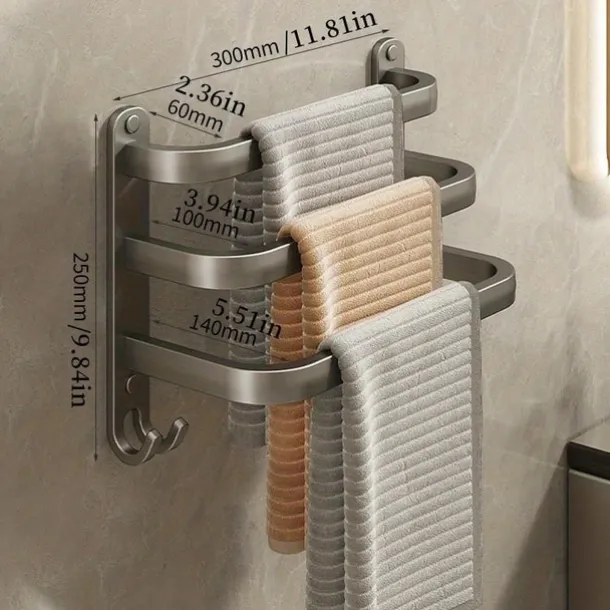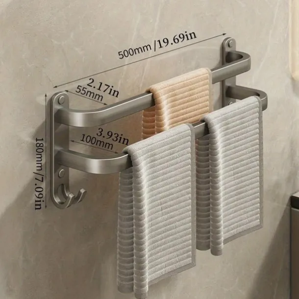 1pc Space-Saving Wall Mounted Towel Rack – Aluminum Shower Room Holder for Bathroom Towels and Washroom Storage