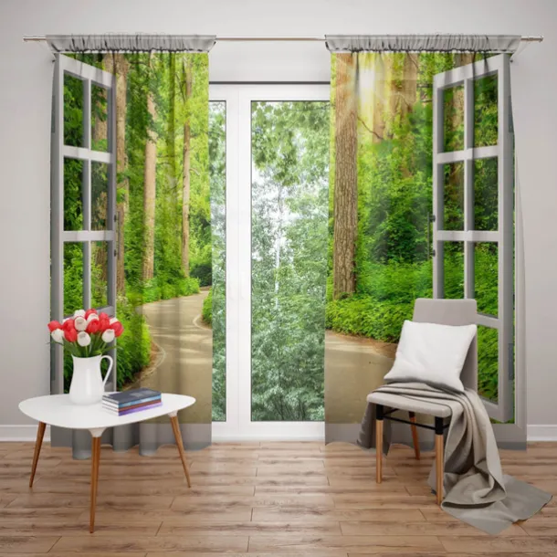 2 Panels Window View Forest Curtain Drapes Blackout Curtain For Living Room Bedroom Kitchen Window Treatments Thermal Insulated Room Darkening