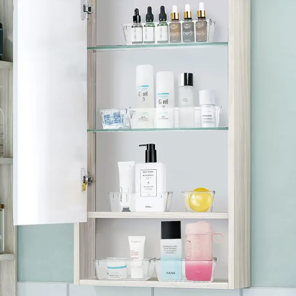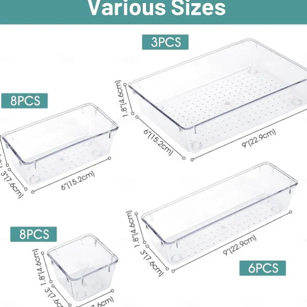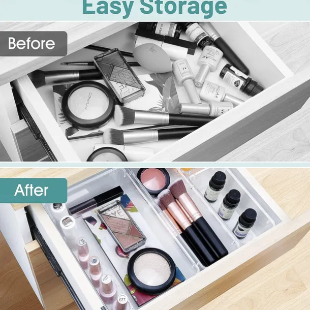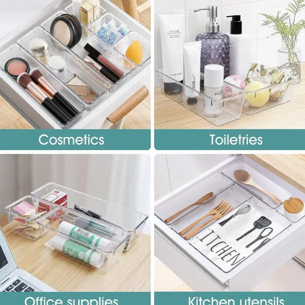 25 PCS Clear Plastic Drawer Organizers Set, 4-Size Versatile Bathroom and Vanity Drawer Organizer Trays, Storage Bins for Makeup, Bedroom, Kitchen Gadgets Utensils and Office