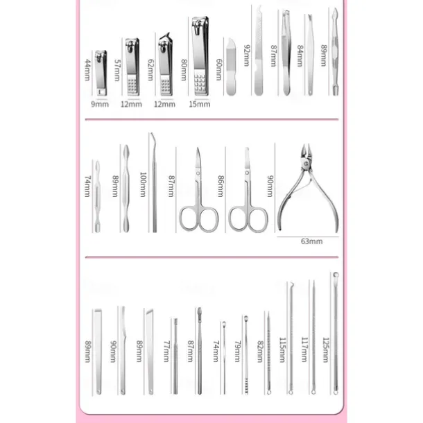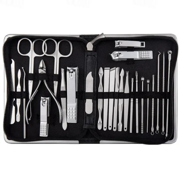 26Pcs Stainless Steel Nail Clipper Cutter Trimmer Earpick Grooming Kit Manicure Pedicure Scissor Tweezer Nail Tools Set