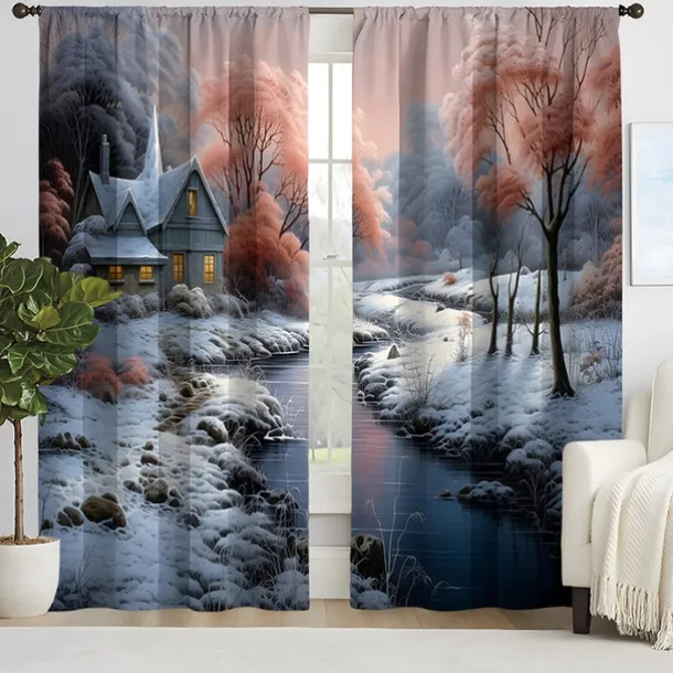 2PCS Landscape Painting Series Curtains 3D Digital Printing Fabric Curtains Window Screens
