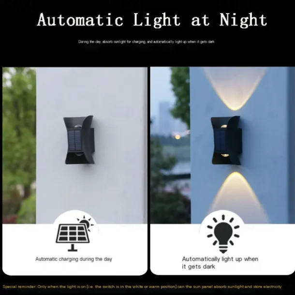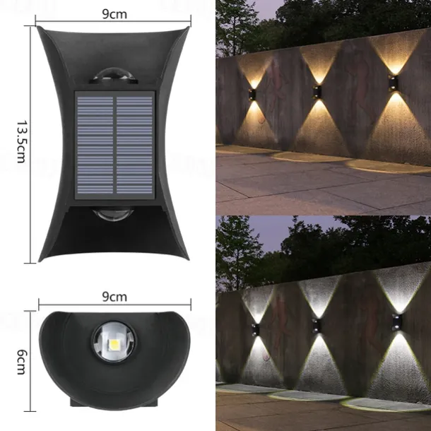 2pcs Solar Wall Lights 2 Modes Lighting Outdoor Waterproof Up and Down Luminous Lighting Garden Decoration Solar Light Stair Fence Solar Landscape Lights