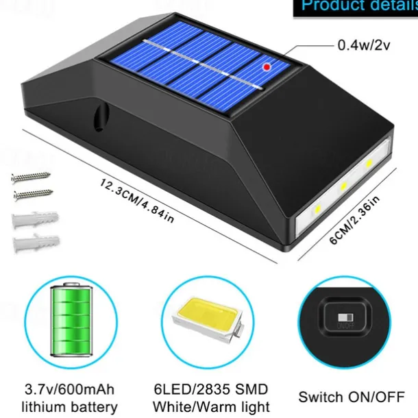 – Long-lasting battery: Our solar panel comes with a high-quality 3.7v/600mAh lithium battery and 6LED/2835 SMD light, ensuring a longer service life and environmentally friendly use.