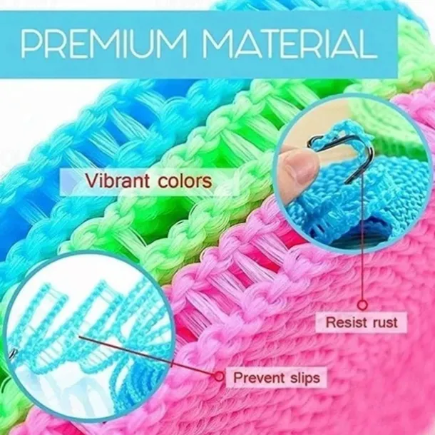 | Size | 10 meters green, 10 meters pink, 3 meters green, 8 meters blue, 8 meters green |