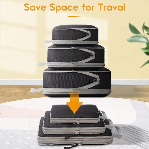 3-Piece Compression Packing Cubes Set for Travel Luggage Storage and Organizer, Large Capacity Expanding Storage Bags for Outdoor Travel & Home Use