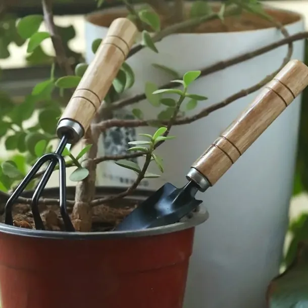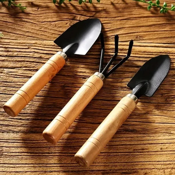 3-Piece Deluxe Garden Tool Set – Lightweight Aluminum Shovel & Rake for Succulent Plants Flower Beds & Loose Soil – Ergonomic Handle Ideal for Compact Gardening Needs