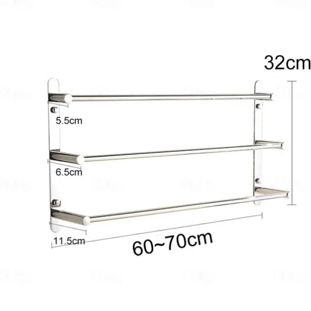 Introducing our high-quality bathroom hardware made of top-notch metal and processed by expert technology guaranteeing the highest quality. Our towel bar, crafted from 304 stainless steel, passes formal material testing, attesting to its enduring strength and corrosion resistance. With a remarkable durability exceeding 20 years, it features a three-layer pole design and can accommodate larger capacities.