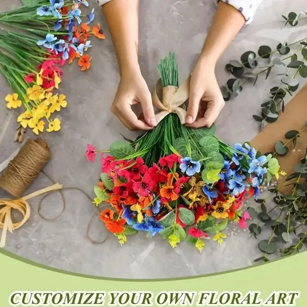 38 Bundles Artificial Flowers for Outdoors, Faux Spring Grass Violet, Silk Printed Aquatic Plants, Eucalyptus Leaves, UV Resistant for Garden Porch Patio Decor