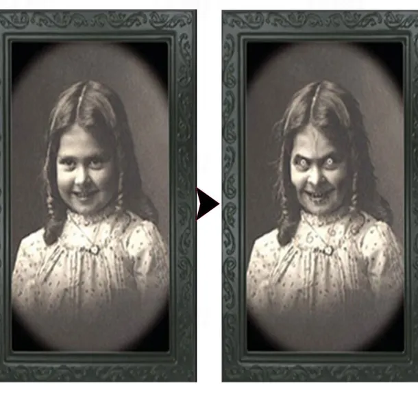 – Transforming artwork: Each picture is designed in a way that as you move across it, a classic portrait transforms into a horrifying monster-filled image.
