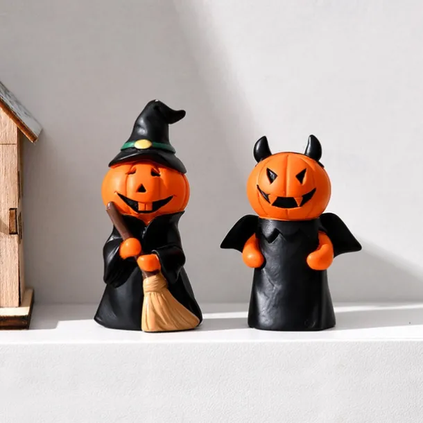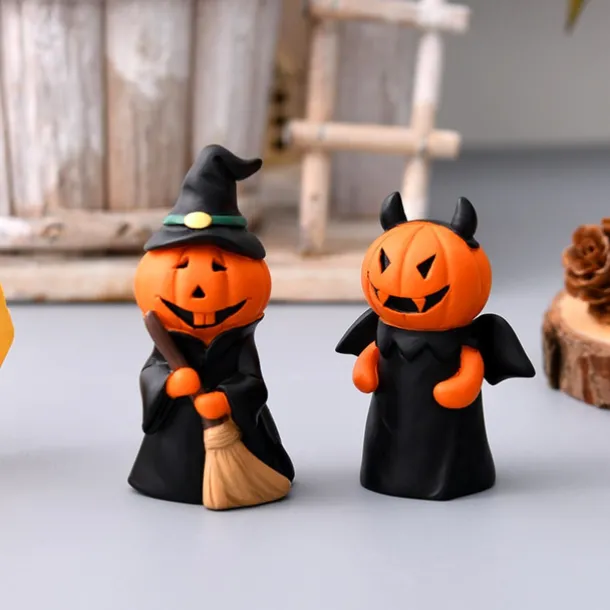 3pcs/set Halloween Pumpkin Ghost Figurine – Resin Car Dashboard Decoration, Spooky Desktop Ornament for Halloween Party & Home Decor