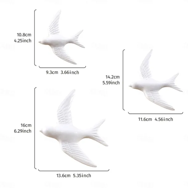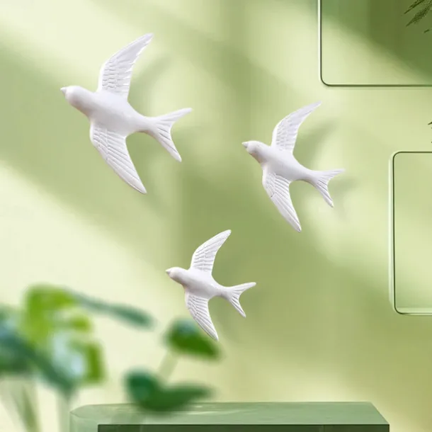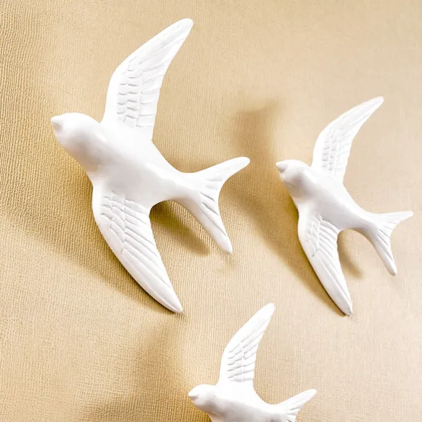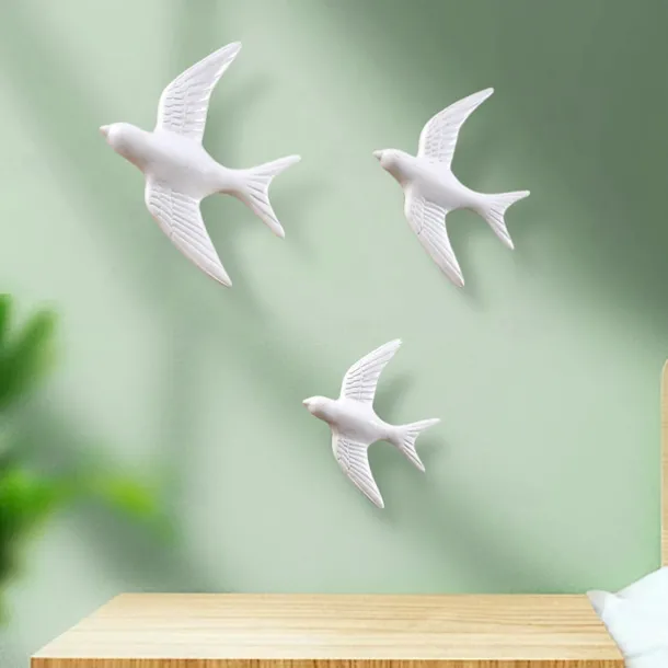 3pcs/set Modern White Flying Bird Wall Decor, Resin 3D Swallow Wall Hanging, Minimalist Home and Hotel Indoor Decoration