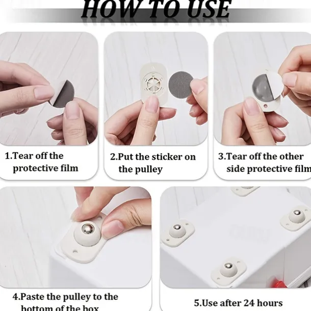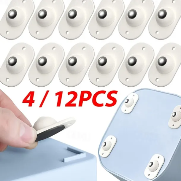 4/12pcs Self-Adhesive Caster Wheels Mini Swivel Wheels Stainless Steel Paste Universal Wheel 360 Degree Rotation Sticky Pulley For Bins Bottom Storage Box Furniture Trash Can
