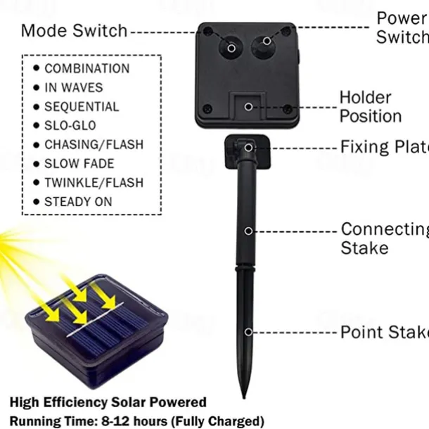 LED Beads Quantity: 40, Light Color: Warm White, Power Supply: Solar Energy, Type: String Lights, Style: Copper Wire Lights, Holiday Lights, Features: Patio, Waterproof, Holiday, Party, Solar, Quantity: 1PC, Voltage (V): Solar Powered, Initial Lumens (lm): 400, Length: 4m, Mode: 8 Modes: (1.Combination 2.Wave 3.Sequential 4.Glow 5.Flash 6.Slow Fade 7.Twinkle 8.Continuous), CRI: >80, LED Type: 3014 SMD, Batteries Included: Yes, IP Rating: IP65, Occasion: Garden, Bedroom, Indoor, Outdoor, Party / Banquet, Wedding, Balcony / Terrace, Courtyard, Patio, Lawn / Shrub, Control Mode: Light Control, Suitable Rooms: Outdoor, Indoor,