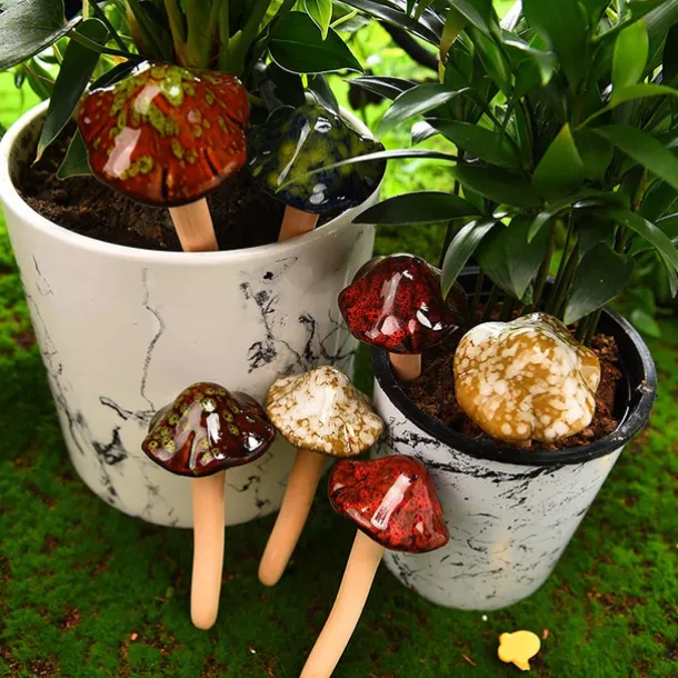 4pcs Ceramic Mushroom for Garden Yard Fairy Garden Lawn Ornament Decor Pottery Ornament Garden Ceramic Mushroom Statue Garden Pot Decoration