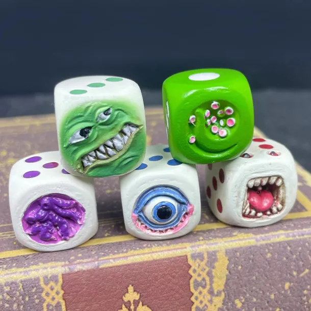 5 pcs Monster Dice, Funy Monster Face Resin Dice Set, Halloween Tabletop Game Dice Set Props, Weird Monster Dice Set for Table Games, Role Playing Games, Offices Home Party Game Props Gift