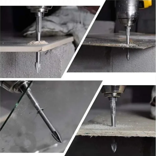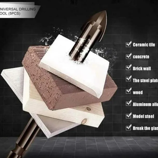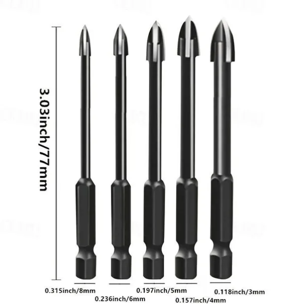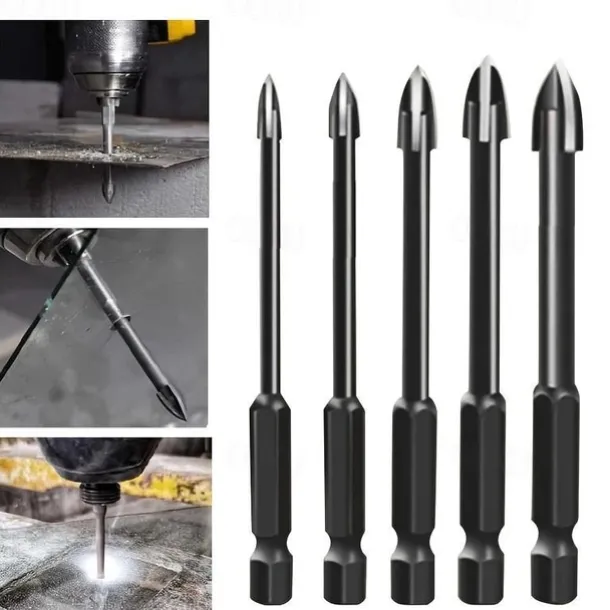 5pcs Efficient Universal Drilling Tools, Multifunctional Triangle Cross Alloy Drill Bit Set, Cemented Carbide Anti-Rust Attachments For Power Tools, Cross Spear Head Drill Bits
