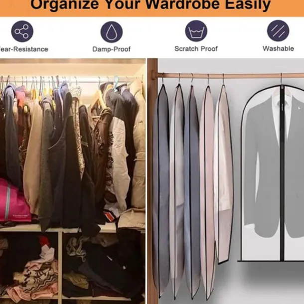 – Safe and Non-Toxic: The garment bags are free from formaldehyde and are made with a transparent and breathable material. They can be washed and reused multiple times while still maintaining their quality.