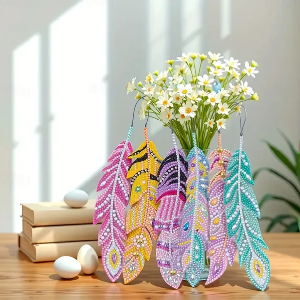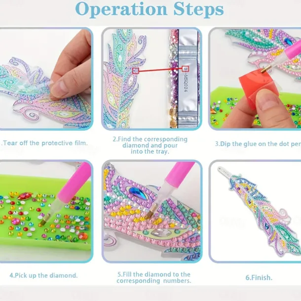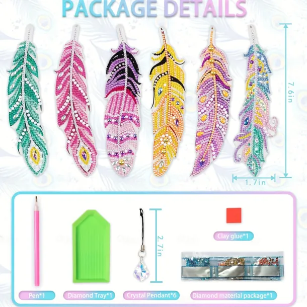 6 Pcs Whimsical Feather Bookmarks – Unique Irregular Diamond Painting Designs, DIY Animal-Themed Craft Kit with Easy-to-Follow Instructions, Perfect for Book Lovers and Craft Enthusiasts