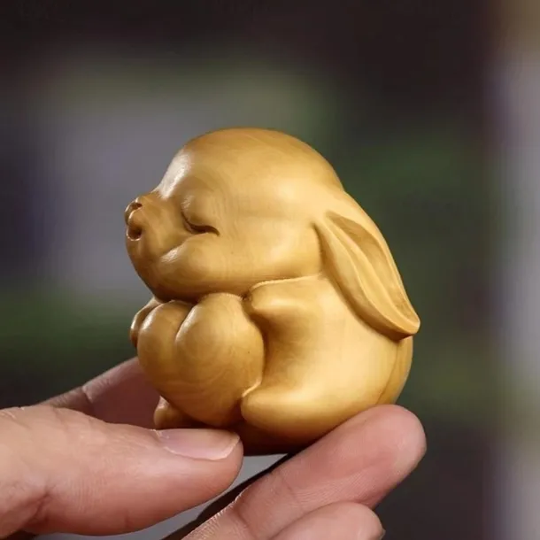 Adorable Love Rabbit Handcrafted Wooden Figurine – Collectible Figurines, Cute Desk Decoration, Handicraft Series Gift Supplies with Exquisite Carving Details