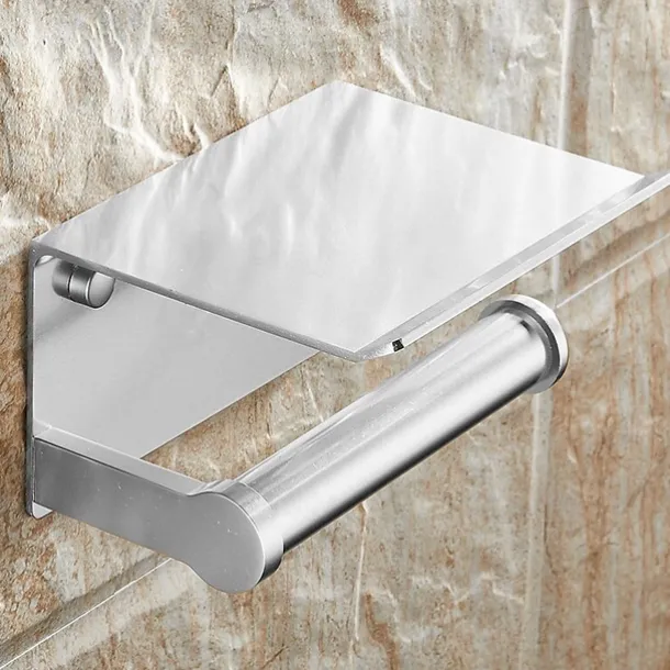 – Add a modern touch to your bathroom decor with this sleek toilet paper holder