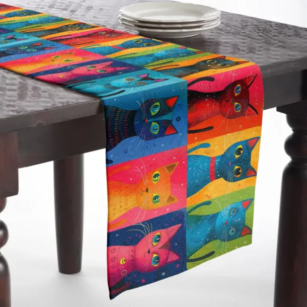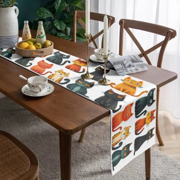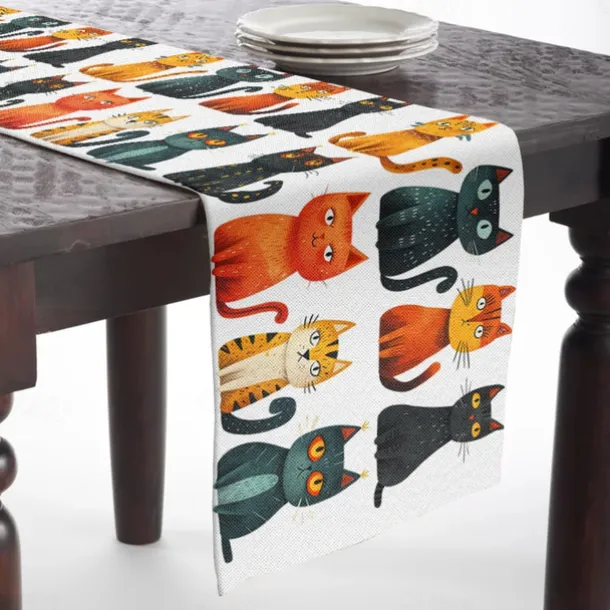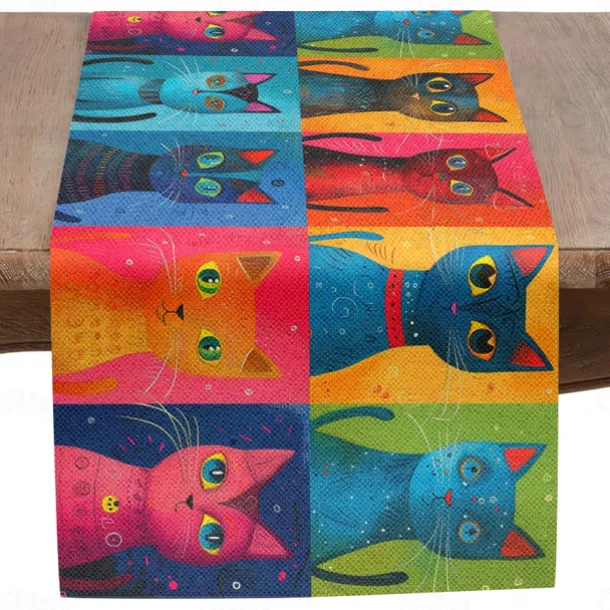 Animal Cat Print Table Runner, Kitchen Dining Table Decor, Print Decor Table Runners for Indoor Outdoor Home Farmhouse Holiday Wedding Birthday Party Decoration