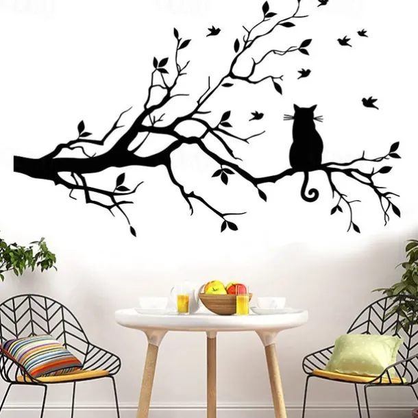 Animals Wall Stickers The Cat on The Branch Wall Stickers Decorative Wall Stickers PVC Home Decoration Wall Decal Wall / Window Decoration 1pc 58X38cm Wall Stickers for bedroom living room