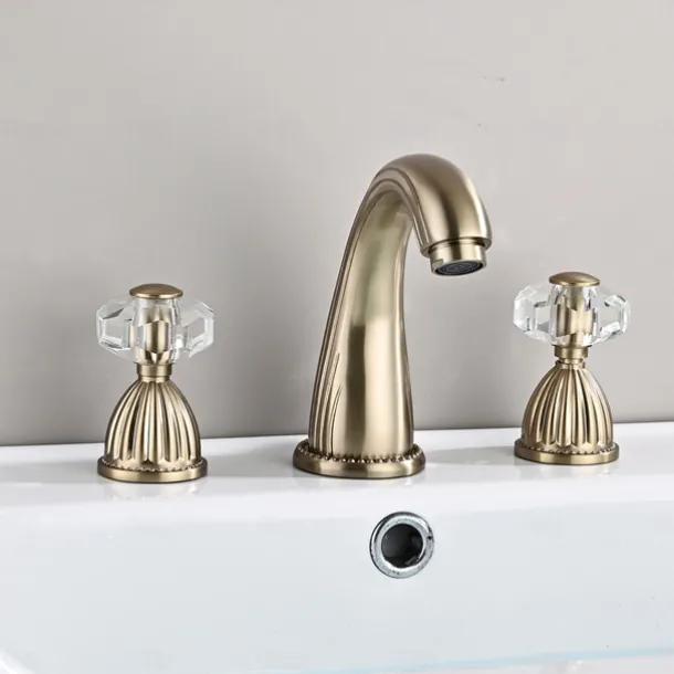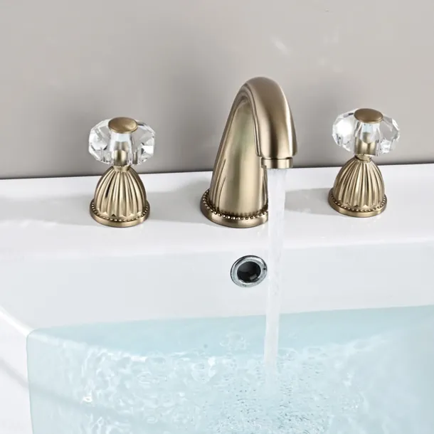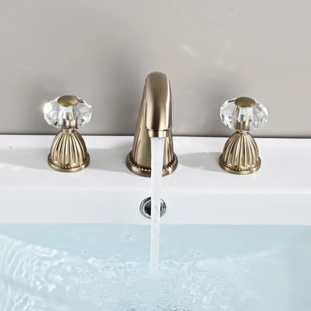 Basin Faucet Antique Bronze Bathroom Sink Faucet 3 Hole Widespread Gold Basin Mixer Hot and Cold Water Tap